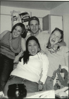 Student Group Photo with a Suite Style Bathroom in 2001 Students in a bathroom taking a group photo, we can see them wearing Leia's along with having some sort of plastic cauldron which indicates this may have been around Halloween time. -
