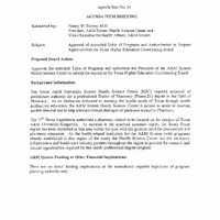 A document that is a agenda meeting item to request the transfer ransfer the College of Pharmacy at Texas A&M University - Kingsville to the Texas A&M University System Health Science Center