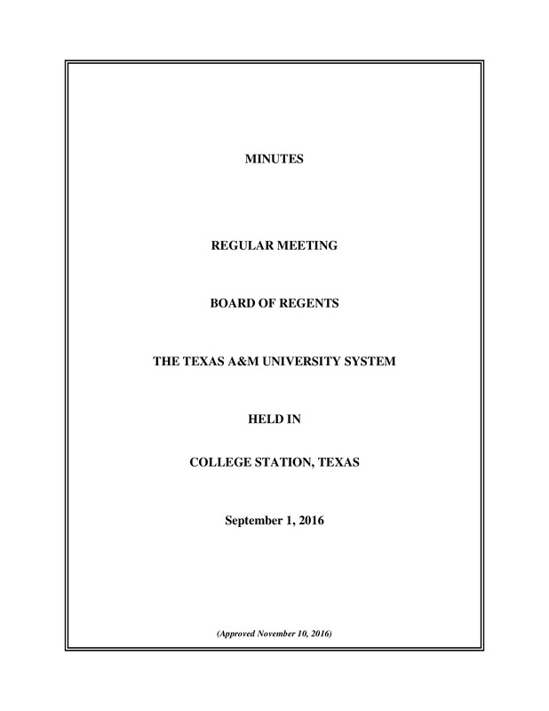 Thomas, C. (2016). Minutes of The Meeting of The Board of Regents. https://assets.system.tamus.edu/files/bor/pdf/Minutes/Regular/2016/2016-09-01%20final.pdf