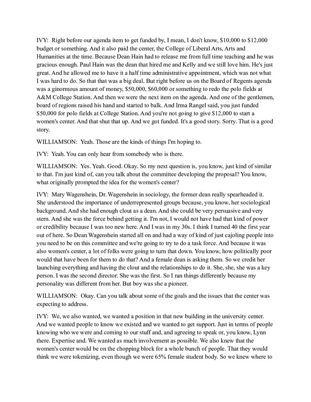 an excerpt of the interview with Dr. Diana Ivy about the Women's Center. Dr. Ivy was on the board of directors and then served as the 2nd director of the Women's Center.
