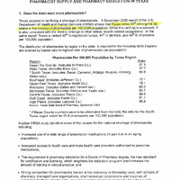 - A document from Irma Lerma Rangel with notes that address pharmacy supply and pharmacy education in Texas.