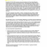 Summary of health care needs and education for health care professionals provided by the Texas Department of Health (TDH), the Health Education Training Centers Alliance of Texas, and the Area Health Education Centers