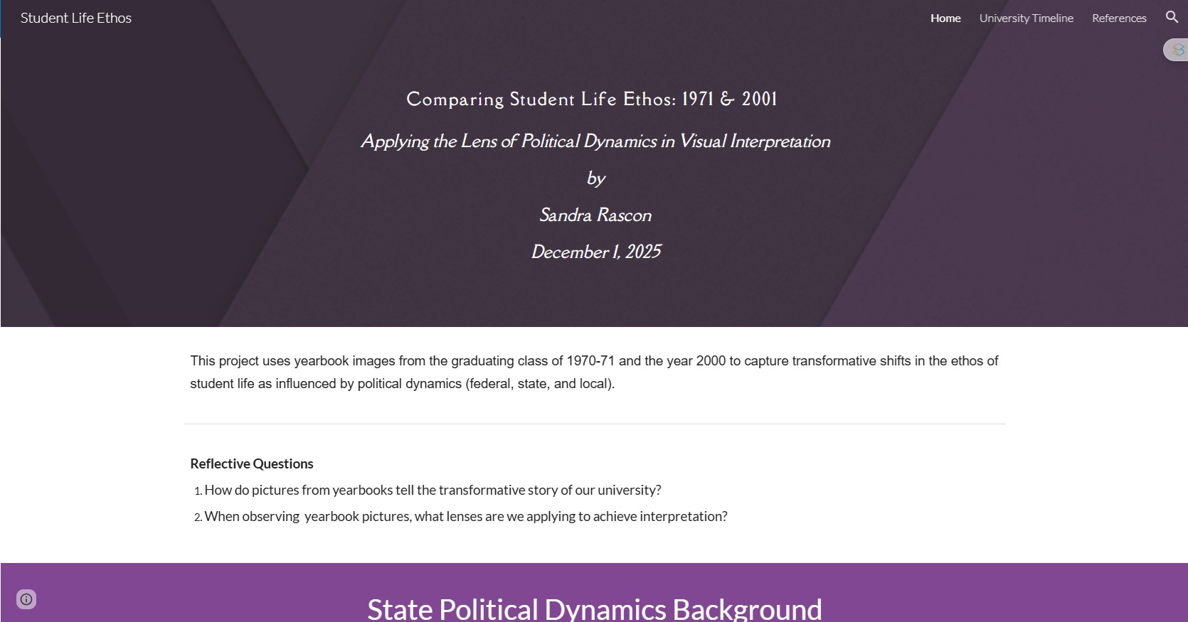 Comparing Student Life Ethos: 1971 & 2001 Applying the Lens of Political Dynamics in Visual Interpretation