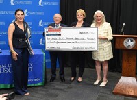Dr Hector P. Garcia Memorial Day The photo of the celebratory event included the signing of a $25,000 gift courtesy of the Dr. Hector P. Garcia Memorial Foundation to TAMUCC. The gift will support an exhibition showcasing Garcia’s works within the university’s new Arts Building. (TAMUCC president in the centre and daughter of Dr Hector P. Garcia in the right)