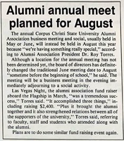 Alumni annual meet planned for August This article discusses the alumni meeting in August. Alumni are one of the best resources and ambassadors of the campus.