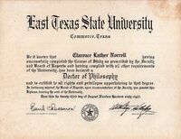 PH.D for C.L. Norrell Here is a scan of the PH.D. Sonny Norrell earned at East Texas University.