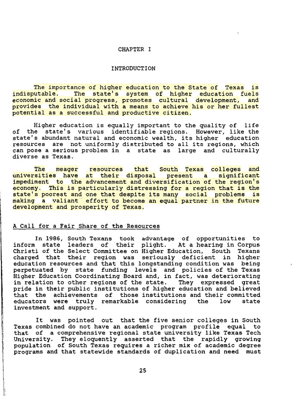 Truan, C., Cavazos, E., Barrientos, G., Caperton, K., Parker, C., Tejeda, F., Uribe, H., Zaffirini, J., Delco, W., Moreno, A., Patterson, P., Rangel, I., Smith, R., & Watkins, G. (1988). Legislative Joint Committee on Higher Education in South Texas. Texas Legislature. https://lrl.texas.gov/scanned/interim/70/ed84s.pdf